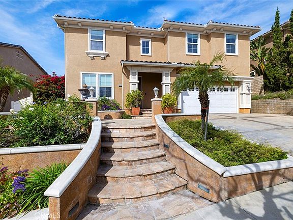 Discover this elegant, Mediterranean-inspired 5-bedroom, 3.5-bathroom home situated on a tranquil cul-de-sac. High ceilings, a spacious open floor plan, and breathtaking canyon views create an inviting atmosphere. From the entry, you'll be greeted by a formal living and dining room, perfect for entertaining, before flowing into the updated kitchen, featuring granite countertops, stainless appliances, and a walk-in pantry. The kitchen opens to the warm and welcoming family room with gas fireplace. Upstairs, all bedrooms offer privacy and comfort, including the expansive primary suite with cozy seating area, dual walk-in closets, and spa-like bathroom. Outside, the entertainer’s backyard boasts a pergola, fireplace with seating, built-in BBQ, and a peaceful water fountain. With an attached 3-car garage and a perfect blend of style and comfort, this exceptional home is not to be missed!