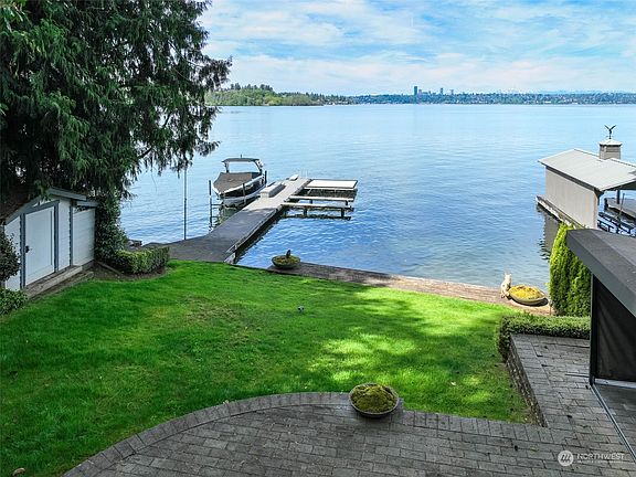 Welcome to this waterfront paradise! Situated on the prime west-facing shoreline of Lake Washington, this property offers breathtaking views of the lake, Olympic Mountains & the iconic Seattle skyline. Embrace year-round lakeside living with amenities such as a temperature-controlled wine room, an exercise room, a rowing shell house, a jet ski lift, a float plane lift, handsome moorage, and a fire pit. This mid-century gem exudes chic vibes and serves as a private retreat, while still being conveniently located within walking distance to downtown Bellevue. Whether you prefer it as is or wish to personalize it, the options are limitless. Complete with a two-car detached garage and access to Bellevue schools & easy commuting to Downtown.