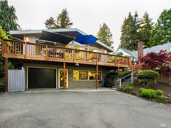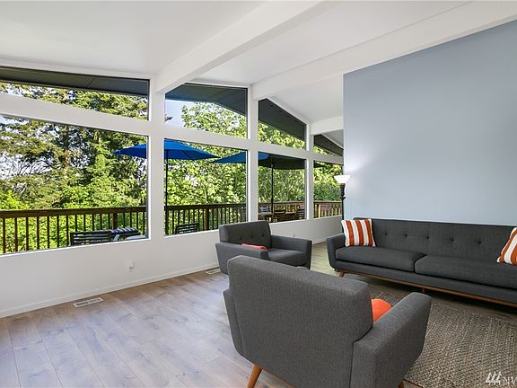 This respectfully refreshed 3 bed/3 bath Maple Leaf NW Contemporary redefines in-city living with each window framing beautiful green landscapes. The main living areas feature vaulted beamed ceilings with large windows & deep overhanging eaves. A wrap around deck, hot tub, and large yard - perfect for relaxing & entertaining. The lower level has a separate living space, 1 car garage, utility room & tons of extra storage. Easy access to Northgate Mall, Maple Leaf Reservoir Park & Lake City / I-5
