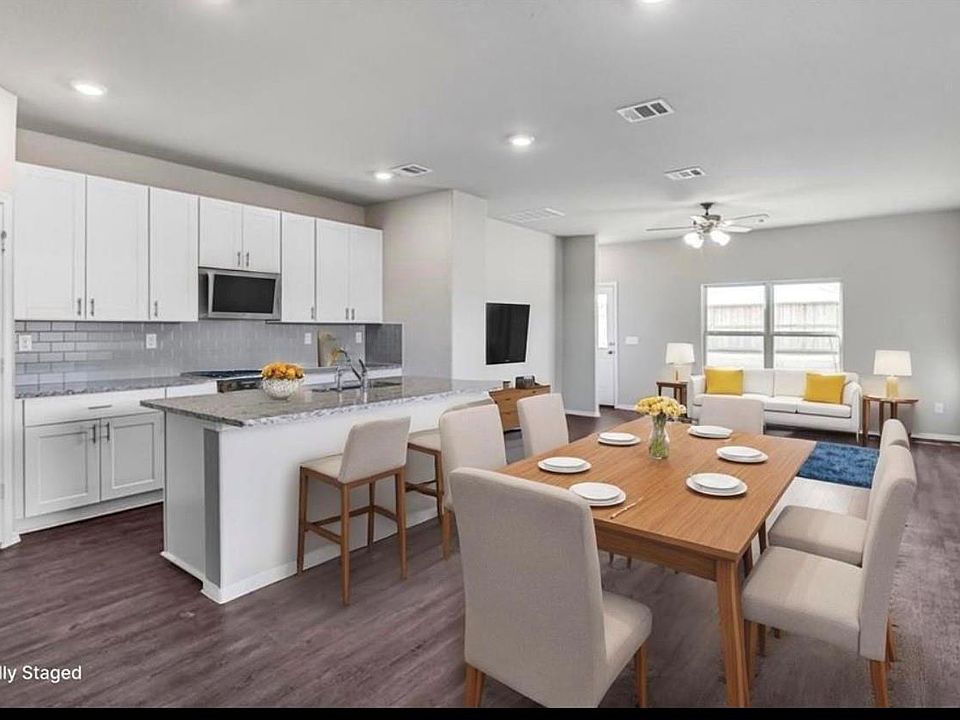 Step inside this spacious home with a open floorplan, 4 beds, 2.5 baths, and a game room. The primary bedroom is on the main floor, with walk-in closets in every room. Enjoy the modern kitchen and outdoor patio on a large corner lot. Perfect for entertaining and making memories, this new construction home is located in a community with walking trails and a playground. Welcome home!
