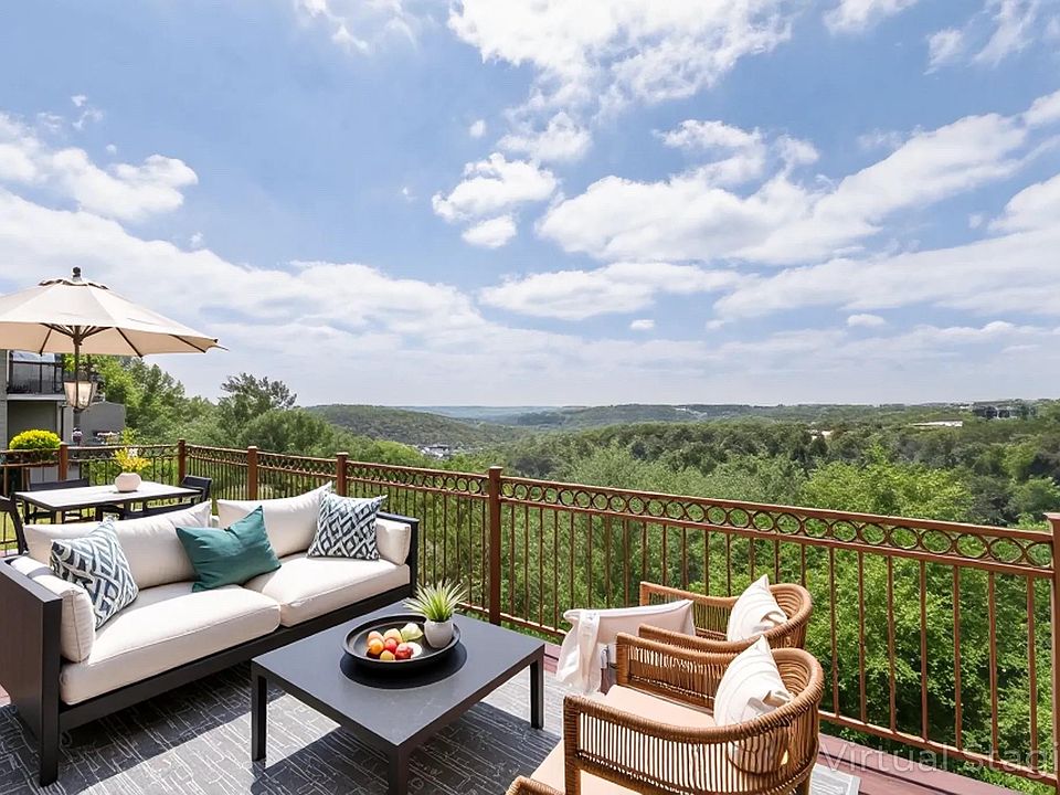 Hill Country views + Vandegrift HS | Lock-&-Leave in gated Colina Vista Welcome to this exceptional 3-bedroom, 2.5-bath condominium offering 2,428 sq ft of thoughtfully designed living space in the highly desirable, gated Colina Vista community. Perched on one of the best lots in the neighborhood, this home boasts million-dollar views of the Texas Hill Country and downtown Austin from both its upper and lower decks — the perfect backdrop for entertaining or relaxing. Inside, you’ll find two spacious living areas plus a dedicated home theater room, ideal for movie nights or hosting guests. Beautiful engineered wood flooring runs throughout the home, with tile in the kitchen and baths for easy maintenance. Freshly repainted with premium, high-end finishes, this residence is truly move-in ready. The gourmet kitchen flows seamlessly into the open-concept living and dining areas, while the generously sized bedrooms provide ample space and privacy. The attached garage features a 240V outlet for EV charging and a convenient storage nook — a rare bonus for added functionality and future-proof living. If you're looking for a low-maintenance “lock and leave” lifestyle, this home delivers. Located just off 2222 between Loop 360 and 620, you’re minutes from premier shopping, dining, Lake Travis, and countless outdoor activities. Enjoy the peace and security of a quiet, gated community with convenient access to all that Austin has to offer.