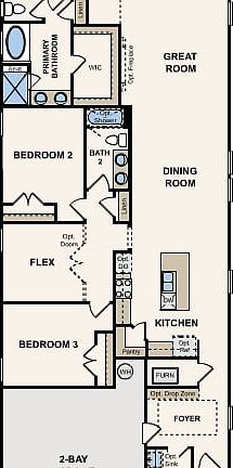 Designed to fit your lifestyle, the single-story Captiva plan welcomes you with a large front porch, ushering you into a spacious foyer with an optional drop zone. Anchoring the home, an open-concept living area includes a kitchen with a center island and corner pantry, overlooking a dining area and a great room-boasting access to a relaxing covered patio. You'll also appreciate the option to add a great room fireplace. The primary suite dazzles with a roomy walk-in closet and a 5-piece bath-offering the options of a freestanding tub, expanded shower or walk-in shower. Additional highlights include a flex room-with the potential to serve as a fourth bedroom.