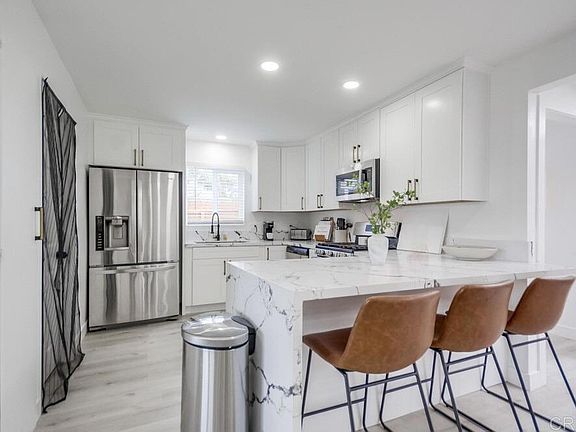 Welcome to 9618 Frascati Way, a charming haven in Santee, CA, where the joys of life unfold effortlessly. Nestled in proximity to the serene Santee Lakes where fishing, camping, hiking is in abundance, this home offers an idyllic retreat for nature enthusiasts while still having everything you need for work and life nearby! Commute with ease from this prime location, with quick access to major freeways that connect you seamlessly to the pulse of the city of San Diego. There's an abundance of shopping & dining options just a stone's throw away in the heart of Santee. This home radiates warmth and pride of ownership, featuring a remodeled kitchen with shaker style cabinets, quartz counters and stainless steel appliances. Freshly repainted interior & exterior, new flooring, updated bathrooms, and double paned windows! Enclosed backyard for privacy and play. Welcome to a life of comfort, convenience, and boundless possibilities at 9618 Frascati Way.