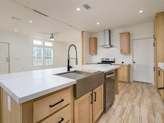 Pre-Construction. To be built. Brand New Manufactured Home. We are currently pulling permits to install this home. The home is a lot model and the home is currently located in Bushnell, Florida for viewing. This home features 9 ft sidewalls and 2 x 6 exterior walls with OSB sheeting, drywall throughout, upgraded crown and base, 9 x 18 vinyl tile throughout, upgraded kitchen with wood cabinet doors, upgraded appliances, farm sink with upgraded faucet, upgraded main bathroom including ceramic tile shower surround with dual diverters.