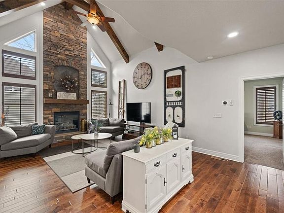Welcome to luxurious living in the highly sought-after Copperleaf neighborhood, where elegance meets comfort in this stunning 1.5-story home. The moment you enter, you’ll be captivated by the open layout, highlighted by a spacious kitchen and great room. The great room boasts soaring vaulted ceilings, expansive picture windows that flood the space with natural light, and a charming fireplace that adds warmth and character to the room. The kitchen features a large island, eat-in area, and a walk-in pantry, making it the perfect space for culinary creativity and entertaining. Hardwood floors seamlessly flow from the kitchen into the great room, elevating the home’s refined style. Step out onto the back deck, ideal for relaxing or hosting guests. The main-floor master suite serves as a private retreat, complete with vaulted ceilings and a spa-like master bath that includes a jetted tub, walk-in shower, double vanity, and an expansive walk-in closet. Heated tiled floors in the master bath add an extra touch of luxury. Upstairs, you'll find three generously-sized bedrooms, each with ample closet space. Two of the bedrooms share a convenient Jack & Jill bath, while the third bedroom has its own bathroom and walk-in closet. Laundry rooms on both levels. The finished basement offers a large entertainment area, and a fifth bedroom with a full bathroom. The walk-out basement opens to a beautifully wooded view, peaceful evenings or hosting outdoor gatherings. Set on a prime corner cul-de-sac lot, this home boasts a screened deck, sun deck. Additional features include plantation blinds on most windows, a floor-to-ceiling fireplace. Bedroom #2 even includes a playroom, making it ideal for families with children. Recent upgrades include a new deck (2020), shingles and gutters (2024), and an instant tankless hot water heater. Relax and unwind as you take in the serene, nature-filled views from your deck. Located in one of the most coveted neighborhoods, a home you want to see!