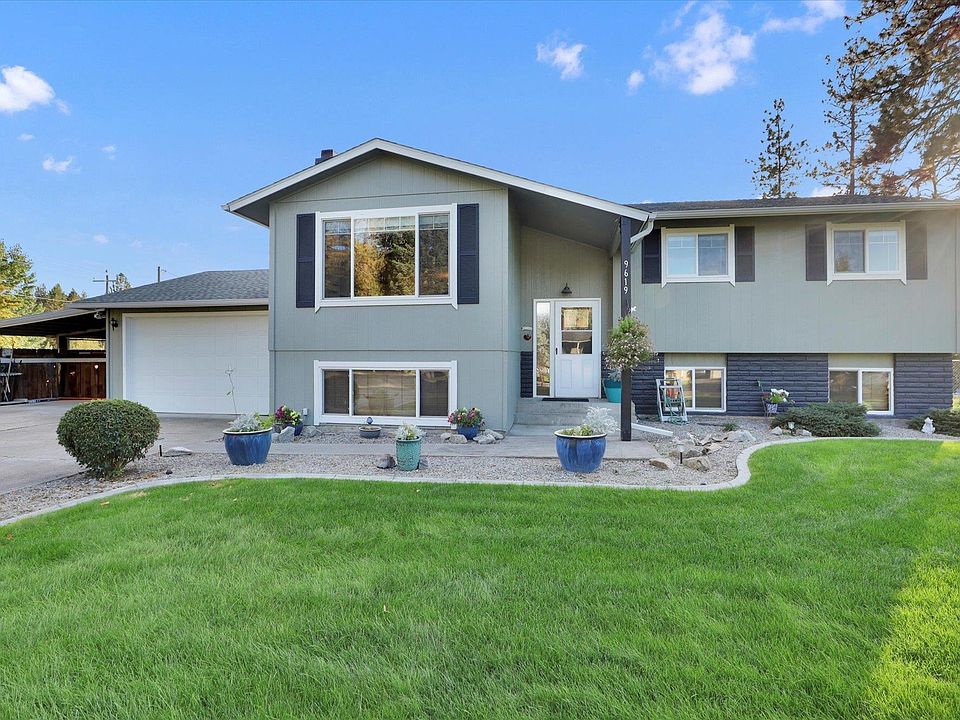 Welcome to this beautifully updated home in the highly sought-after Nine Mile Falls community! With 5 bedrooms and 3 baths, this spacious and versatile residence offers room for everyone. The fifth bedroom can easily be converted into two separate bedrooms, providing endless possibilities for family, guests, or office space. Enjoy new flooring throughout and a stunning updated kitchen featuring granite countertops, stainless steel appliances, and modern finishes. Cozy up by one of two fireplaces or entertain in the expansive lower-level family room. Step outside to a large covered deck overlooking a fenced backyard, perfect for gatherings and outdoor fun. The property includes an attached 2-car garage, carport, and RV parking on a generous .65-acre lot. Surrounded by natural beauty and move-in ready, this home perfectly blends modern comfort, style, and charm.