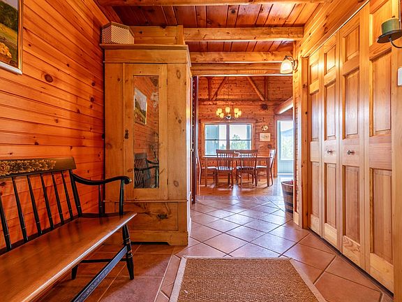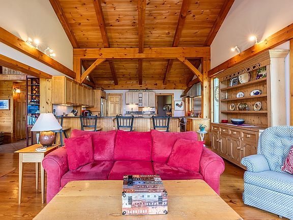 Located on the East side of West Windsor, this spacious, impeccably maintained, expanded log home is situated on 4.4 acres with panoramic views overlooking the valley to Mt Ascutney and beyond. This is the perfect opportunity for your very own manageable hobby farm. The Post and Beam Kitchen with sweeping cathedral ceiling is well appointed with custom cabinetry, granite counters, Viking range and a pantry, opening directly to a spacious LR/ Great Room with a fireplace and sliders that step out to a deck facing the mountain view. The Dining/ Family Room with a pellet stove connects to a lovely screened porch overlooking an established apple orchard and verdant rolling meadows. The first-floor accommodations include a primary bedroom ensuite, and an additional guest room. There is a loft area with an additional bedroom. The walkout lower level lower-level walkout includes a Family/Game Room, Bunk Room, full bathroom, laundry, storage, and kitchen potential for an income-producing rental. The three-car garage is connected by a mudroom with laundry, utility closet and powder room. Generator, Central AC, Fiber Optic Internet. The barn/workshop connects to a horse shed for easy expansion. Lots of space for equipment storage. Open acreage perfect for horses. Excellent proximity to hiking and recreation trails. Ten minutes to Brownsville Village, Ascutney Mountain, Windsor. 20 minutes to Woodstock, I-91.