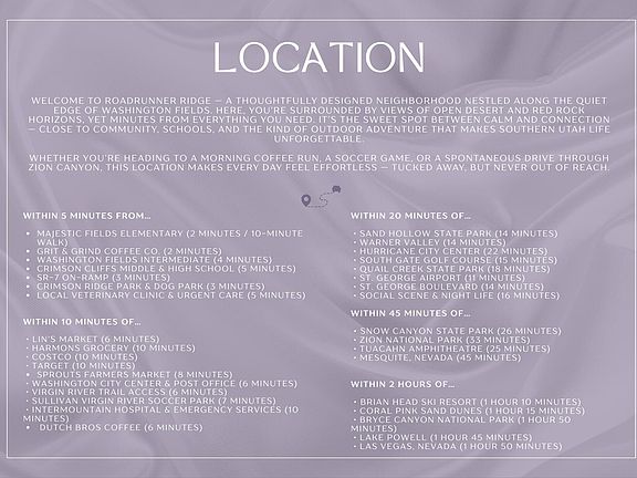 Welcome to Roadrunner Ridge, where thoughtful design meets modern living in Washington Fields. This corner-lot home blends comfort and versatility with a side-entry, temperature-controlled garage, and a large fenced backyard with a dedicated dog run and built-in dog door. Inside, 10-foot ceilings, luxury vinyl plank flooring, and a custom plastered mantle create a sense of openness and warmth. The split floor plan offers privacy for the primary suite, while the attached casita—with private entrance and designated parking—adds flexibility for guests or rental income. Gas is stubbed on the back patio for outdoor cooking, and every space has been thoughtfully designed for both function and style. Just minutes from schools, shopping, and endless recreation. Your perfect So. Utah home awaits!