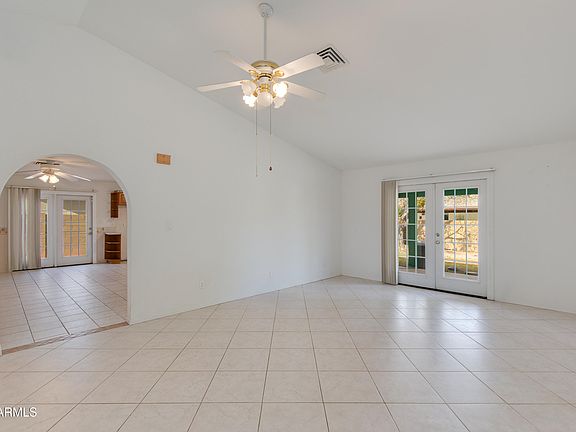 This spacious 3-bedroom, 2-bathroom home in Mesa is the perfect opportunity for a makeover! The large kitchen offers tile counters and ample cabinet space, while a bay window in the dining area adds a touch of character. French doors open up from both the family and living rooms, bringing in plenty of natural light. The home features tile flooring throughout, vaulted ceilings, and generously sized bedrooms. Outside, you'll find an enlarged covered patio, a brick side patio, and a storage shed. This home is ready for your magic touch - don't miss out on this great project!