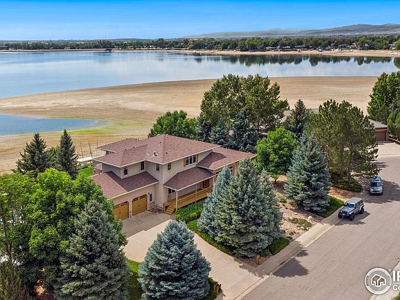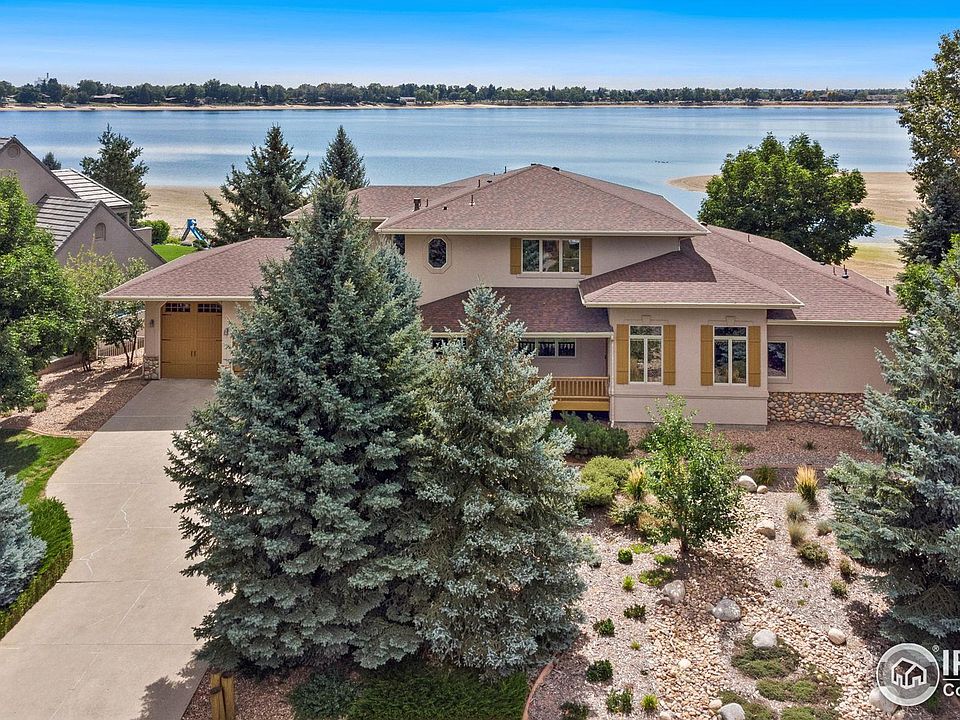 Rare opportunity to own this spacious and beautiful LAKEFRONT home on iconic Logan Court. Live the life you've always dreamed about with surface rights to a private lake w/ private boat ramp and floating dock in your backyard. Enjoy boating, skiing, paddle boarding, swimming, and more on Lake Loveland. Offered by the original owners, this home boasts multilevel decks, hot tub, and year-round sun-drenched views across the lake. The remodeled gourmet kitchen features gorgeous granite and professional-grade appliances -- perfect for entertaining. Main level primary BR, w/ a total of 5 BR, 5 baths, + study, and sprawling basement rec room with unlimited potential. No HOA.