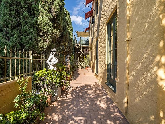 Welcome to Silver Lake! You'll be one block away from coffee, cocktails, dining and more, while also reveling in the tranquil surrounds of this magnificent 1925 character home. Take a role in the next chapter of this little slice of Los Angeles history, an address that has made cameos in films from 1930s noir to a modern-day rom com. Be delighted when you discover all the surprises beyond the street level gate and parking. Private patios, mature landscaping, smashing views, and pedigreed architectural details abound. Entertaining here will be unmatched. Enjoy preparing amazing meals with the classic O'Keefe and Merrit stove, or use the grill set up at the charming outdoor kitchen patio. This stately home provides all the craftsmanship of arts and crafts era designers, while at the same time providing a parcel size which allows for turnkey living when desired. The laundry nook and an outdoor sauna are tucked away for use as they are, or ripe for re-envisioning. Proof of this quintessential Los Angeles locale, from the privacy of your relaxing balcony, a view of the Hollywood sign and the Griffith Observatory in the distance! This is the perfect combination of access to fully cultured city living and retreat-style privacy. The zoning here allows multiple dwellings.