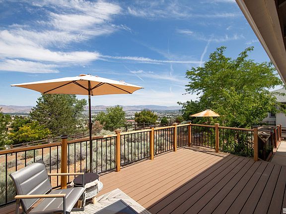 LIVE in the WOW! Live like you’re on vacation every day in this stunning newly remodeled home. Extraordinary, magazine-worthy interior design meet gorgeous panoramas of downtown Reno, valley and mountains. The outdoor space is just as fabulous. It’s highlighted by a new Trex deck, the perfect place to enjoy your down time while taking in the magnificent vistas., Centrally located above the University of Nevada, this home has easy access to downtown Reno, I-80, entertainment, shopping and medical facilities. Enter the dramatic, open great room with vaulted ceilings, impressive chandelier, unique fireplace and light wood floors. Large windows and new sliding glass doors (with enclosed blinds) take full advantage of the beautiful views. The high-end kitchen has all the modern touches you dream about. Completely remodeled, it features white quartz counters and backsplash with exquisite veining, new black cabinets, modern display shelves, new stainless-steel appliances, island with breakfast bar, extraordinary lighting and very large pantry. Watch the sunrise over the valley from the kitchen window. Surrounding bay windows bathe the cozy breakfast nook in lovely light. Wake up to the sun filtering through mature lilac leaves in the restful primary suite. Amenities include vaulted ceilings, inspired grey marble-look tile, spacious walk-in closet, furniture-style vanity, two sinks, designer mirrors and modern lighting. Original garden tub and shower offer plenty of space for an easy upgrade to a mega shower. This gem is set on a corner lot in a quiet cul-de-sac surrounded by a well-maintained classic neighborhood. Mature and natural Nevada landscaping requires minimal upkeep. Your pet will love the doggie door from the laundry room to a safe fenced area close to the house. Heating and Air Conditioning replaced in 2021 and water heater in 2017. Come see this unforgettable home today. You won’t want to leave.