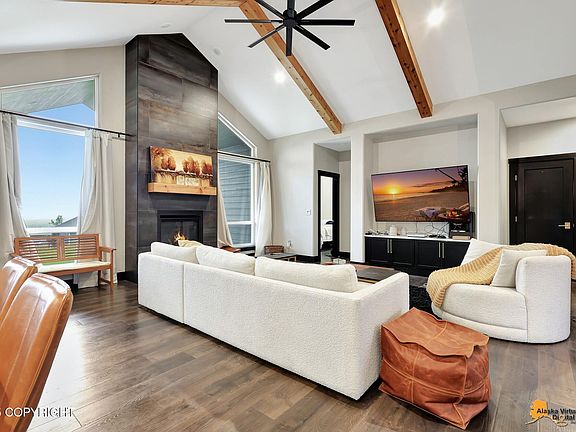 Step into refined luxury with this exceptional modern custom home, thoughtfully designed for both comfort and elegance. Featuring two expansive primary bedrooms, each with spa-inspired en-suite bathrooms and sliding glass doors leading to a massive covered concrete patio, this home offers seamless indoor-outdoor living with breathtaking mountain views.The heart of the home is an open-concept living area with soaring vaulted ceilings and oversized windows, flooding the space with natural light and framing the scenic landscape. A chef's kitchen awaits, complete with a butler's pantry, high-end finishes, and a sleek wine bar perfect for entertaining. Function meets luxury in every detail from the custom built-in shelving in the laundry room to the carefully curated finishes throughout. Whether you're hosting guests or enjoying a quiet evening on the patio, this home blends style, functionality, and stunning surroundings in perfect harmony.