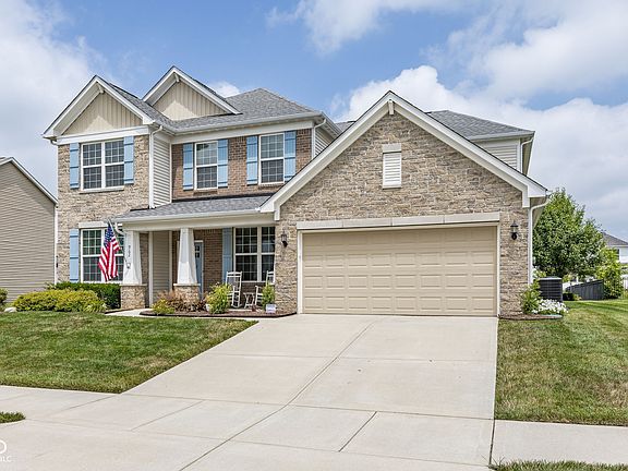 An updated **FIVE** BEDROOM home in Westfield with the most incredible 3 car tandem garage/workshop on one of the largest lots in MAPLE KNOLL -- all for under $500K!!? Yes please! This better-than-new Pulte home is LOADED with upgrades you won't find elsewhere! Step inside to the warmth of the LVP flooring that runs throughout the main level (2021) and you are welcomed with TWO versatile flex spaces currently used for dining and a playroom - could be an office and secondary living area?! You choose! The main living area is tucked away at the back of the home with a wall of windows overlooking the huge, manicured backyard! A chef's dream kitchen with double ovens, gas range top, vented hood, a separate microwave and quartz countertops/sink/disposal - all new in 2021! Large island for casual dining and adjacent breakfast nook connects to the family room with cozy fireplace! Functional spaces round out the main level like the mudroom with boot bench, planning desk area (2nd office), and storage room under the stairs! Upstairs you'll find the primary suite with blackout barndoor window shades and a luxury NEW tiled shower/frameless glass enclosure (2025), vanity dressing table area PLUS double sinks and a WIC! 4 spare bedrooms - all with walk in closets! The workshop is accessible from the garage AND backyard - making for the ultimate hang-out! Stamped concrete patio with hot tub (2022- negotiable) is a dream come true with raised beds, a playset (negotiable) and lush landscaping! New roof (2021), new gas water heater (2021) and new a/c (2023)!!! Maple Knoll offers a large community swimming pool, tennis/pickleball courts, basketball, a playground, trails and fun events like movies in the park and Easter egg hunts! Don't miss this gem!