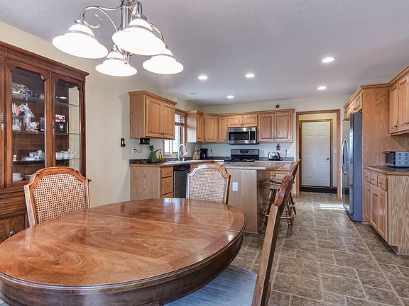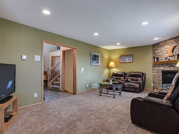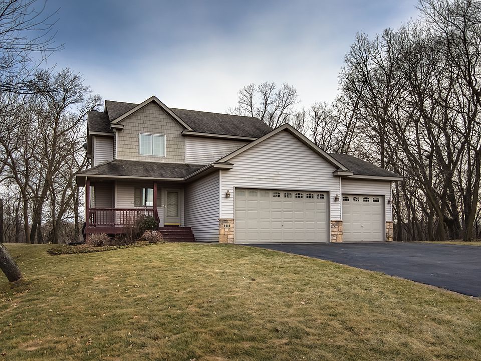 Very impressive home on 3+ acres. This one sparkles inside & out! 4BR/3BA two-story with both attached & detached heated garages. Sunrise river runs thru land with lots of trees, wildlife & great views. Main level has a gorgeous kitchen with granite counters, LVP floors, lots of cabinets, & great island. Dining room walks out to huge deck with river views, living room has cozy gas fireplace. Also on main level is the laundry, 1/2 bath, large foyer & mud room. Upstairs has 3 BR's & 2 full baths, main BR has private bath with jetted tub & separate shower, walk-in closet, & beautiful wood accent wall. Lower level has 4th BR/Office, large family with walkout & cozy free-standing gas stove. Also in lower level is 3/4 bath & lots of storage. Dream detached garage - WOW - heated, insulated, steel wainscoat, tongue/groove pine, work benches - 1 rolls for easy project work, large windows for natural light, 12' metal ceilings, & drive thru garage doors. Only minutes from I35. Don't miss it!