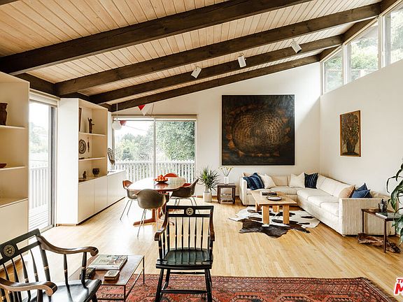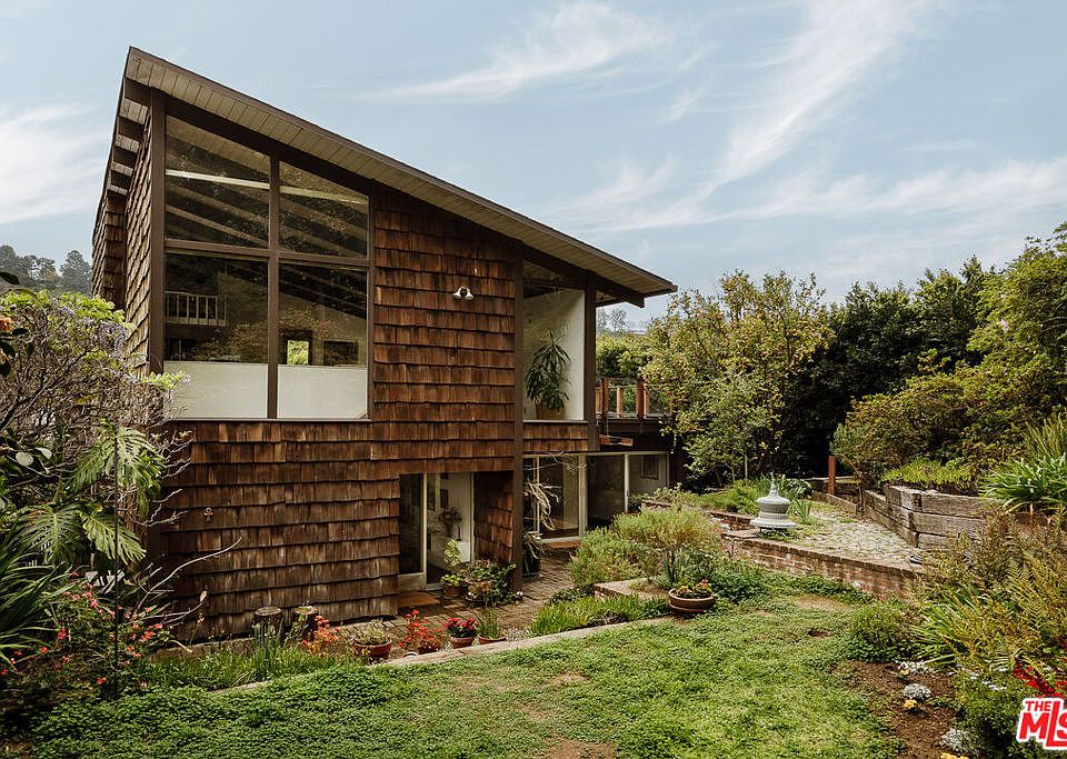 FIRST OFFERING - The Leona S. And Rudolph H.T. Mattoni Residence, 1969. Leona and Rudolph (Rudi) Mattoni, partners in life and business, designed this three-level home, incorporating period features like cedar-shake siding, post-and-beam construction, soaring vaulted ceilings, and luminous clerestory windows. Each room prioritizes abundant natural light and an immediate connection to Coldwater Canyon's sylvan setting. Terraced exterior spaces and views of Coast Live Oak and neighboring Norfolk Island Pines stretch the lot lines to appear far beyond their measure.Rudi Mattoni, a renowned lepidopterist, environmentalist, and real estate investor, was a self-taught designer who built several houses, a laboratory, and two apartment complexes, often collaborating with his close friend, Robert Skinner, AIA. For this home, Rudi and Leona crafted a unique hybrid of California Modernism that marries the clean lines of Los Angeles midcentury design with the elegant and angular 1960s rusticity of the Sea Ranch. The garden, home to lush foliage and native wildlife and tended to by Leona, an educator and biologist with a detail-oriented knack for carrying construction and entrepreneurial projects to fruition, still spotlights the Wisteria, Camelias, and Magnolias planted before the completion of the house. The Mattoni Residence was built eight years after the 1961 Bel-Air fires destroyed Rudi's cherished home, an elegantly remodeled French Regency with a mid-century addition previously belonging to the Master Architect, William S. Beckett. That house further exposed Rudi to the modernist aesthetic that would inform the homes, apartments, and furniture he would later design. The quest to build his own dream home took hold when Rudi married Leona in 1968, and they purchased an empty lot in Coldwater Canyon.There, they designed a multi-functional floor plan with options for a den, a family room, a craft room, multiple bedrooms, outdoor spaces for al-fresco dining and stargazing, and an upper-level studio with unparalleled views, a loft, and an en suite bath - a secluded space bursting with creative opportunities. Lovingly preserved, with original finishes intact, and sensitively updated with plumbing and electrical upgrades and seismic retrofitting, this residence represents the best of both worlds, a rare survivor of innovative midcentury architecture ideally suited for the 21st century.