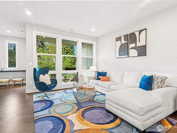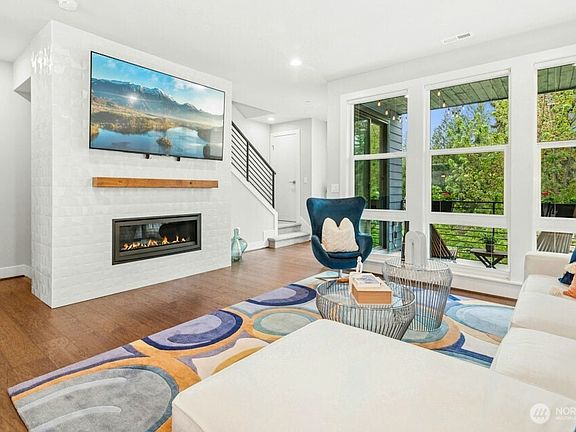 Step into contemporary elegance w/this stunning Toll Brothers resale — where high design meets unbeatable location. Nestled near parks, river trail, cafes, craft pubs & transit, this 4-bdrm, 3.5-bth home offers the ultimate urban lifestyle. Soaring 9-ft ceilings & picture windows flood w/natural light & provide serene park views, rare in condo living. Enjoy upscale finishes incl a sleek tile-surround Rave fireplace, rich hdwds, premium quartzite counters & top tier appls incl Forno gas range. Appreciate the details: privacy blinds, designed closets, smart hm wiring, central A/C & a mud rm off a fully outfitted 2-car gar w/built-ins for storage & organization. More than a home — it’s a stylish, move-in-ready retreat in the heart of it all.