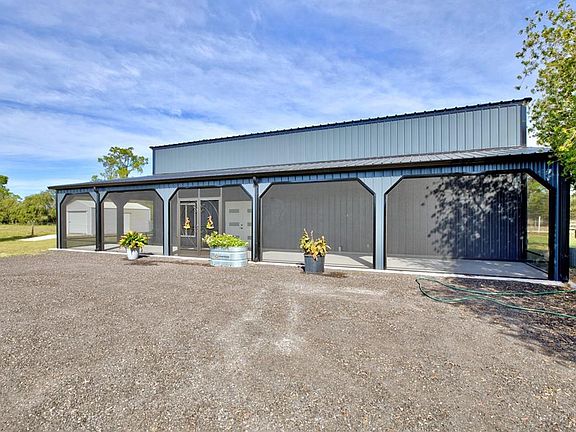 Exclusive gated community with no HOA, this gorgeous 3BR/2.5BA Barndominium blends rustic charm with modern luxury on 5 private acres with a pond. A complete rebuilt, featuring new framing, insulation, electrical, plumbing, and septic, plus commercial-grade flooring throughout. Enjoy a custom kitchen with gas appliances and exotic petrified wood countertops, soaring 16 FT ceilings, and a spacious master suite on the first floor. Upstairs offers two bedrooms, bathroom and a loft living area. Relax on 120’ of wraparound screened porches overlooking your fenced pastures, mature trees, and peaceful setting. Property includes RV hook up, 3 wells, shed, chicken coop with chickens, duck house with ducks, a bull. Truly a hidden retreat!