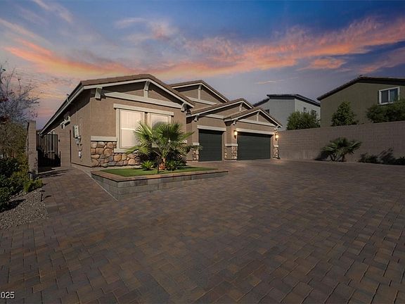 Single story, 4 bedroom, 3 bath, 3 car garage, 7 car driveway, NextGen home (casita), finished backyard includes an entertainment wall, sunken fire pit, water feature, covered patio and luxury landscaping with professional lighting. The open concept design with a massive granite island creates a spacious seat and serve opportunity for dining or entertaining, while the smart home technology provides unparalleled convenience. The NextGen suite offers a separate living area with its own bedroom, bathroom, kitchenette, laundry and separate entry making it perfect for a variety of living arrangements. The crescent paver driveway fits up to 7 vehicles. Don't miss out on this incredible opportunity to own a stunning single-story home in Southwest Las Vegas. Contact us today to schedule a private viewing. Act now to make your dream home a reality.