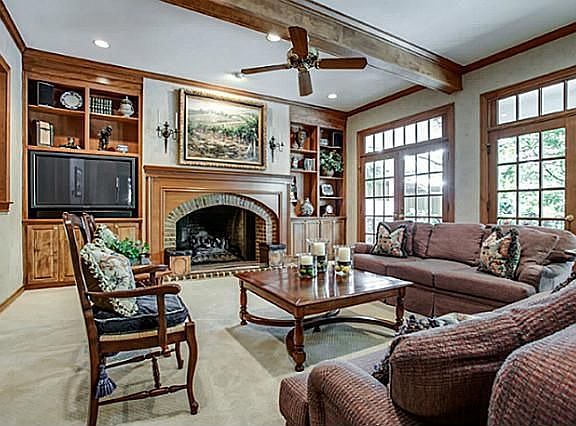 Graceful traditional in Pebble Creek.Central hall plan,high ceilings,wood floors & views from every room from large windows.3 living areas plus study.Master has dual baths & fireplace.Outdoor living includes covered porch,kitchen,salt water pool,spa,waterfall.gas fire pit & Viking grill.Side garden can be used as play yard.Lush landscaping.3 zones,3 fireplaces,new roof,2007 renovation.3 car garage.Floorplan great for family life and entertaining!