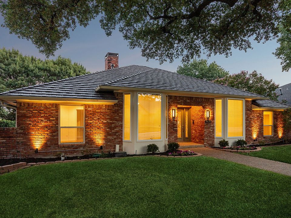 Move right in and start enjoying this beautifully updated 4 bedroom, single-story in the heart of Lake Highlands! Bright, open spaces with soaring ceilings and rich oak hardwoods set the tone for easy living and entertaining. The reimagined kitchen shines with a crisp white palette, marble counters, custom cabinetry, Miele appliances, and a beverage fridge—perfect for everyday meals or hosting friends. The bathrooms have been stylishly remodeled, including the spa-like primary retreat with dual dressing areas, soaking tub, and frameless glass shower. Flexible living areas flow seamlessly, from the spacious family room with wet bar and lighted display shelves to the vaulted secondary living space ideal for game nights or a home office. Retractable glass doors open to a private backyard with Trex deck, fresh landscaping, and ambient lighting. With a durable impact-resistant metal roof, updated windows, tankless water heater, and designer lighting throughout, this home is as updated and functional as it is warm and welcoming.
