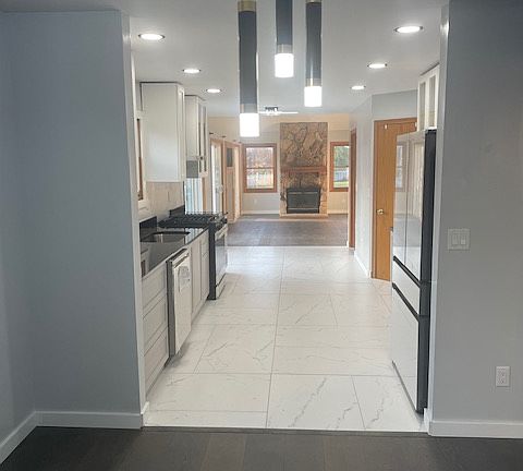 freshly painted,remodeled kichen, new appliances,new flooring,new deck,basement partially finished.close to I94
