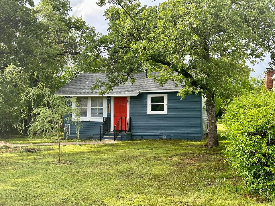 Home is a two bedroom and one bath home on .45 acre lot with beautiful trees. The home features hook ups for a stackable laundry unit. This home in in Carl Albert schools and a great neighborhood.
