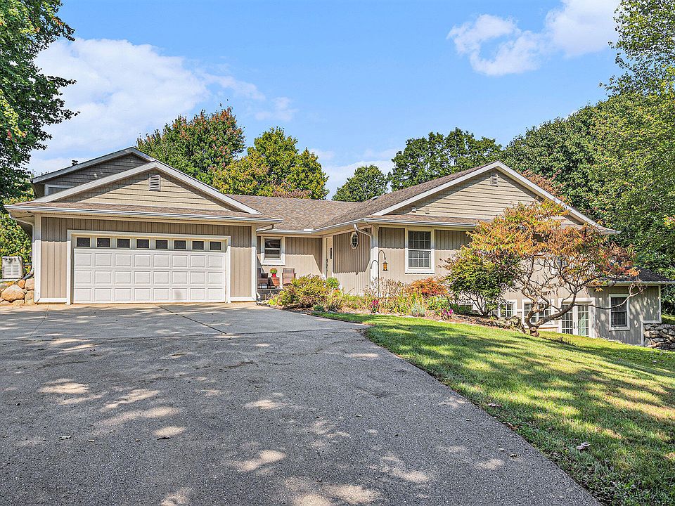 Lovely Ranch walkout set back off road situated on 3.5 acres with a 1,680 sq. ft. universal style barn + 900 sq.ft. loft. Barn is heated/AC. Popular Texas Twp., Mattawan Schools. Located on R ave a Michigan's Natural Beauty road. Offering 4 bedrooms, 3 full bathrooms, over 3,000 sq. ft. on main floor & loft. Plus a finished walkout level w/4th bedroom, a living room w/several windows, game/craft area, dry bar, full bath & storage closets. Several improvements, Generac generator, asphalt driveway, Entire property fenced & backyard, heat/ac barn & more. Bedrooms are double size with space for offices within & loads of closets. Tongue & groove wood ceilings with recessed lighting. A great room that will impress with a cozy wood burning stove & panoramic vies of property. Outside is a patio & gazebo. Paved driveway w/gate. See video for a walkthrough & feel the beauty.