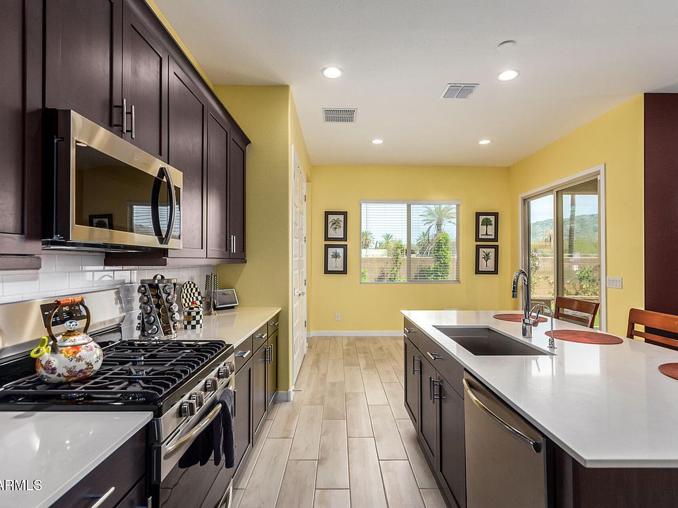 All appliances are included! Backyard has unobstructed mountain views that stretch for miles! Step into the private backyard, beautiful outdoor luxury with a custom, maintenance-free yard with high-quality synthetic grass. Built in 2023, this is a stunning turn-key home in the highly sought-after community of Dobbins Village. The home affords an abundance of living space with 4 bedrooms, 3 full bathrooms, and flex space. The owner's luxurious ensuite, located at the back of the house for added privacy, provides a tranquil retreat with double sinks, large shower, and spacious walk-in closet. The gourmet kitchen offers a large Quartz Island, stunning cabinets, sleek gas cooktop, and large pantry. The open concept brings the kitchen, dining room, and great room together effortlessly, extending to the oversized covered patio. Car enthusiasts will appreciate the large 3-car tandem garage with room for storage. The seller invested in high-quality interior paint, luxury Fabrica carpet and professionally landscaped backyard with lots of extra space to add your own touches, and a beautiful custom gate from First Impression Ironworks at the front entrance to the home adding a wow factor.