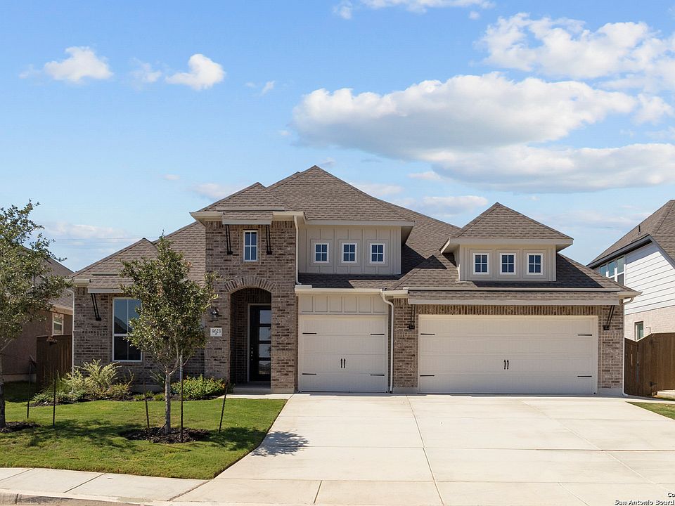Welcome to the stunning Groveton in the master-planned community of Stillwater Ranch! The exterior of this home is a true masterpiece, featuring a blend of brick, stucco, and custom stone that exudes curb appeal. As you enter, you're greeted by a dramatic foyer with dual-coffered ceilings, guiding you past a private guest suite and a spacious study. The kitchen is a chef's paradise, equipped with sleek quartz countertops, stainless-steel appliances, and an oversized island that invites culinary creativity. Throughout the home, upgraded cabinetry adds a touch of sophistication, while rich wood flooring enhances the main living areas. Retreat to the elegant primary bedroom, which connects to a luxurious bath featuring a generous walk-in shower with a bench seat and an extra-large closet for all your storage needs. The expansive great room flows seamlessly to a Texas-sized covered patio, perfect for outdoor entertaining. The master suite and dining area have been thoughtfully extended to provide even more living space. Additional storage and workspace are conveniently located in the three-car garage. Don't miss out on this exceptional home-visit today!