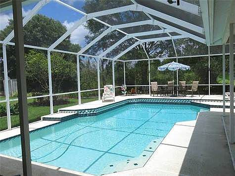 Must see!! Beautiful 4 bedroom, 3 bath home on conservation in desirable Pebble Creek golf course community. This well maintained home features an oversized pool, 10-foot ceilings through out, fireplace, skylight, ceiling fans, irrigation system, owned security system, water softener and an upgraded kitchen. The kitchen upgrades include stainless steel appliances, upgraded granite counter tops, solid wood cabinets, and 20x20 porcelain tile. The master suite has sliding glass doors to the lanai and pool area, a large walk-in closet, and a bathroom with double sink vanity, garden tub and separate shower stall. Southern Crafted popular Sanibel floor plan includes formal living & dining rooms, family room, foyer, and a central eat-in area. The family room features pocket sliding glass doors on to the lanai and pool area with terraced decking, a fireplace, and laminate floors. Additionally, this home features newer roof, carpet, AC (with transferable warranty), hot water heater, pool pump and much more. Come and enjoy all the community features like a community pool, tennis courts, volleyball court, basketball court, baseball field, several playgrounds and a community center all while paying low HOA fees & no CDDs! Located in the heart of New Tampa closeto I75, for easy access to down town, shopping, restaurants and A-rated schools. Brokered And Advertised By: RUSSELL ADAMS REALTY INC Listing Agent: CODY ADAMS