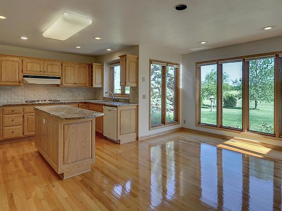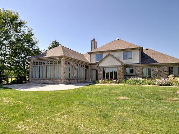 Stunning custom home on 6 acres, over 3700 sf. convenient to I94! This 4 bedroom, 2.5 bath home offers a perfectly laid out open floor plan with plenty of space for entertaining, including a huge four season room with heated tile flooring. The gourmet kitchen includes granite, a large island, pantry, a sitting area and a dining space plus a two way gas fireplace shared with the lovely living room. First floor also features a generous sized master bedroom w/ walk-in closets, and private en suite w/jetted tub, separate laundry, formal dining room, and cozy living room. Upper level has office space, 3 bedrooms plus another full bath. 3 car heated attached garage, plus greenhouse w/separate electric, & 2 other detached garages for all of your toys. This property is one of kind in so many ways!