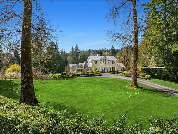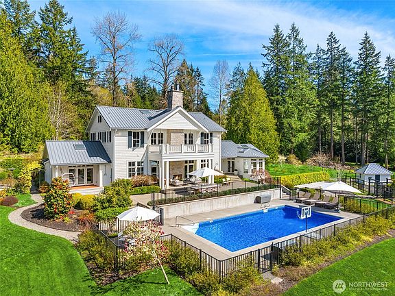 This gracious and timeless estate, set on 9.97 sunny acres, offers privacy yet is a short drive to the ferry and town. Custom built with exquisite attention to detail, the home features an open and sophisticated layout, with a main floor primary suite, 3 additional ensuite bedrooms and an attached 3-car garage. French doors lead from the living, dining and family rooms to the south facing patio, with an outdoor fireplace and swimming pool. The chef’s kitchen features a 60”Viking stove, a glass front Sub-Zero refrigerator and a dreamy pantry. Explore this special property with its peaceful territorial views and stunning gardens, a seasonal pond and an orchard with fruit trees, a bocce ball court and a modern shop/studio rebuilt in 2020.