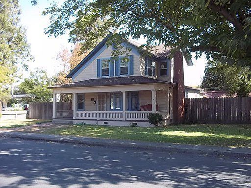 Historic Gem! Swing into Fall While Sitting on FrontPorch Swing. Walk to Old Elk Grove. Built in 1910 start yourholidays in this 4 bedroom 2 bath charming country home. Classicformal dining room, living room with fireplace & built inbookshelves plus large bay window. Country kitchen has plenty ofstorage with wood block counter top. Refrigerator, washer &dryer included "as is". Laundry room in sun porch locatedoff kitchen nook. Nook also includes built in china cabinet. Onedownstairs bedroom & bath. 3 bedrooms upstairs all with goodlight from big windows & one bath also upstairs. House isequipped with whole house fan. Backyard includes room for garden,brick patio with cover, & covered carport behind gated &fenced backyard. Home does not have garage. Lots of room forgardens. Owner provides sewer, trash, full gardening service, &pest control. Hwy 99 to Elk Grove Blvd east, rightGage