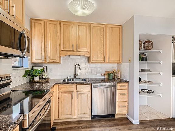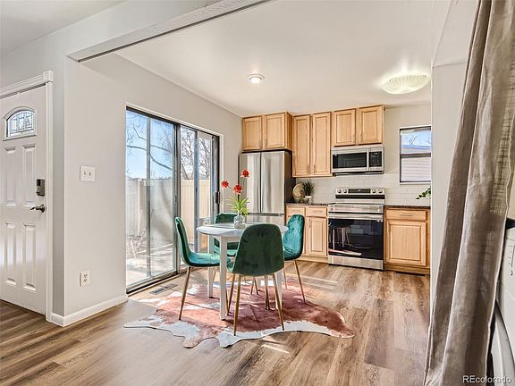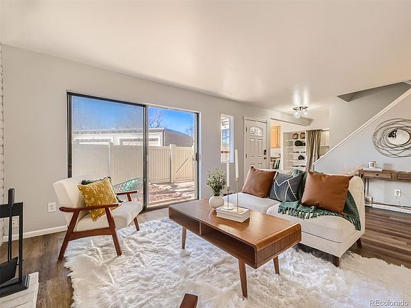 Freshly renovated condo looks and feels like a townhome with its fenced yard and a 2-car garage! This gorgeous home offers an open floor plan with lots of light, beautifully updated kitchen with new stainless steel appliances, granite counter tops, custom subway tile backsplash, large pantry, new luxury vinyl flooring on the main floor, new carpet on the upper level, new interior paint, new light fixtures, new smart thermostat, new smoke detectors and a brand new water heater. Spacious primary bedroom has a walk-in closet with fabulous organizers and a brick accent wall, second bedroom has an extended closet and there are multiple extra closets with lots of space throughout the home. Powder room has a brand new vanity and upper level full bathroom offers a double vanity with a granite counter. Enjoy your evenings by a cozy wood burning fireplace and a cup of morning coffee on your spacious patio. There is a pet door from the kitchen to the fenced yard for your puppy as well. 2-car detached garage with large closets is conveniently located right next to the unit. Excellent location close to Light Rail, shopping, dining and belongs to the award-winning Cherry Creek School District. Schedule a showing before this rare gem is gone!