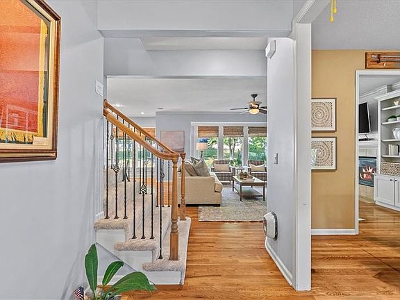 Welcome to this beautiful two-story Craftsman in Lenexa, perfectly positioned on a spacious corner cul-de-sac lot. With 4 large bedrooms each with direct bath access—this home is designed for both comfort and convenience. The layout includes generous main level living spaces, a dedicated office, dining room and beautiful built-ins. The expansive primary suite offers a versatile sitting room, perfect for a second office bonus space. Recent updates include a brand-new covered deck, new roof, new fence, freshly carpeted stairs, newer paint, and manicured landscaping. All appliances stay for a move-in-ready experience. The oversized 3-car garage provides extra storage and easy access for vehicles, equipment, or mobility needs. The large backyard offers plenty of room for outdoor activities, gardening, or peaceful evenings on the covered front or back patios your choice. The partially finished basement is designed for flexibility—featuring a custom bar and open space ready to become a rec room, home gym, or guest suite while still utilizing the large storage spaces. Neighborhood amenities include a pool, nearby public golf courses, great restaurants and sidewalks throughout for easy navigation. This home is waiting for you to call it yours!