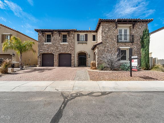 Welcome to Cortessa, offering panoramic views of the White Tank Mtns. Bike or walk the paths to any of 5 parks in 88 acres of landscaped greenbelt. Your 5 bedroom, 3 bath uniquely crafted home awaits! Gourmet kitchen w a massive granite island, SS appliances, 5 burner gas cooktop and multiple wall ovens opens to a patio w gas fireplace.. Home features coved ceilings, arched doorways, media niche & plantation shutters. Luxurious master en suite has travertine tile, massive tub, tiled shower with dual heads. Upstairs area features a loft, 2 bedrooms, full bath and private 20'x 20' game room. You'll never want to leave your backyard oasis w covered patio, water falls, fresh salt water pool, built in grill & fire bowl elements for that perfect staycation ambiance! No neighbors behind!