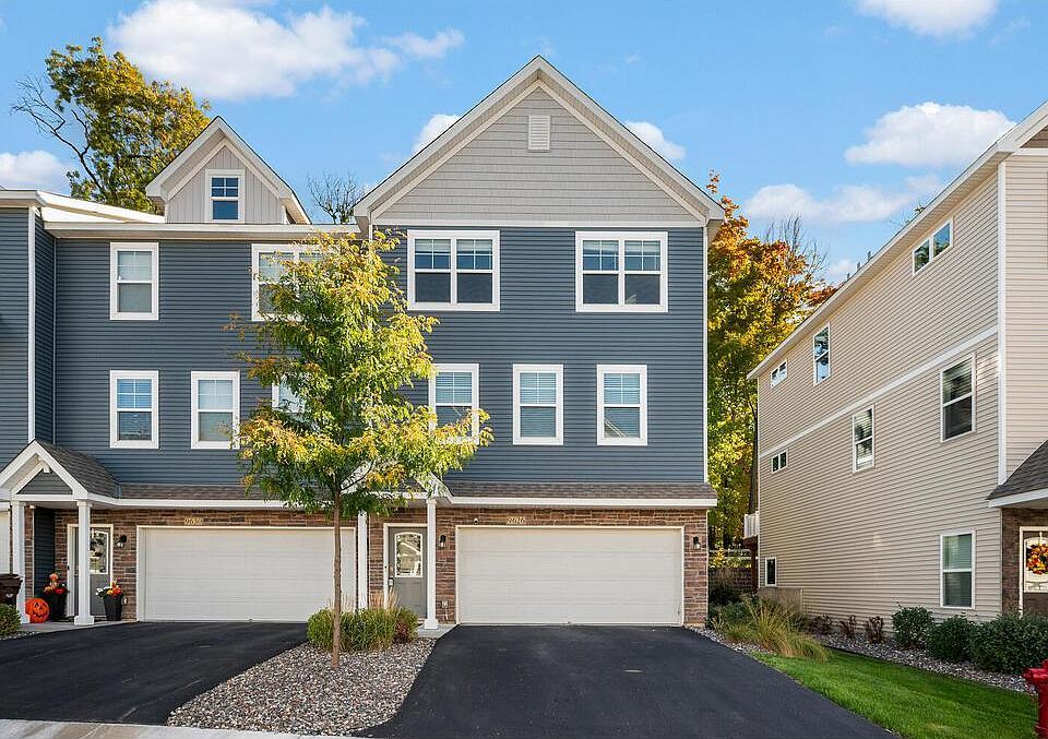 Freshly painted and fully cleaned! Like new 2019 built end-unit townhome in a fantastic Maple Grove location with over 2000 square feet of living space. Main level features a study/den or kids play area, large spacious living room, open concept kitchen/dining with granite and stainless. Walkout to a large deck overlooking nature. Upper level has 3 bedrooms, primary suite with private bath and walk-in closet. 2 other bedrooms share a full bathroom. Convenient upstairs laundry. Lower level has family room, 1/2 bath, tons of storage, utility room, and garage access. Close to schools, parks, shopping, restaurants. Lawn, snow, sanitation all included in association fee. Come enjoy everything Maple Grove has to offer in this convenient setting.