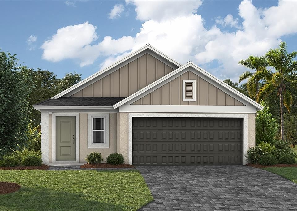 One or more photo(s) has been virtually staged. ?The Bismark is a single-story floorplan with a 2-car garage. You’ll find the laundry room conveniently located in the foyer. The foyer flows into an open-concept kitchen, dining, and living area, perfect for both everyday living and entertaining. The seamless transition from these spaces to the covered lanai allows for easy indoor-outdoor living. Off the kitchen, two well-appointed bedrooms share a bathroom, providing comfort and privacy for family members or guests. Tucked away at the back of the house, the owner's suite offers a peaceful retreat with a spacious bedroom, a luxurious bathroom, and a generous walk-in closet. Experience the charm of country living with all the conveniences of the city at Cherrywood Preserve, a 55+ gated community. This golf cart friendly community in Ocala, FL offers boldly unboring new homes right next to the Market at Cherrywood: a short ride from groceries, restaurants, shopping, and Interstate 75. Homeowners have access to a variety of amenities including a lap and lounge pool, jacuzzi, fitness center, billiards room, horseshoes, shuffleboard, bocce, basketball and pickleball courts. Stay connected with neighbors through a lively social calendar and enjoy year-round gatherings in beautiful indoor and outdoor spaces. Images shown are for illustrative purposes only and may differ from actual home. Completion date subject to change.