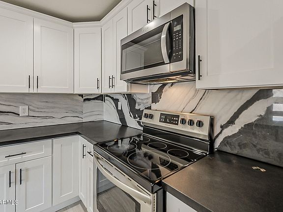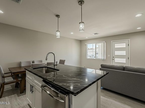 This Phoenix home blends comfort and style with a layout that feels both welcoming and functional. At the center, the kitchen stands out with its granite-topped island, stainless steel appliances, and generous cabinetry that makes everyday cooking and gathering effortless.
