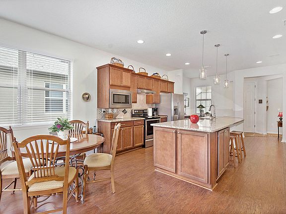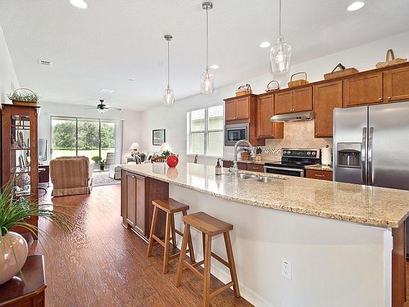 Steel Creek 2/2/2 on the meadow with tree line! This is a better than new home, just 7 months young and ready for sale. High end laminate floors throughout except wet areas, upgrades all over the house, cabinets, countertops, backsplash, pendant lights, Ceiling fans, comfort height bath cabinets, SS upgraded appliances, blinds, and rounded corners. The lanai is screened in and the view is fabulous. The garage has epoxy floor and screen garage door, with utility sink, and overhead storage racks. WOW if you want a garden home in Stone Creek and do not want to go thru the building process than you need to hurry this one is going fast!