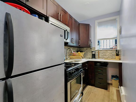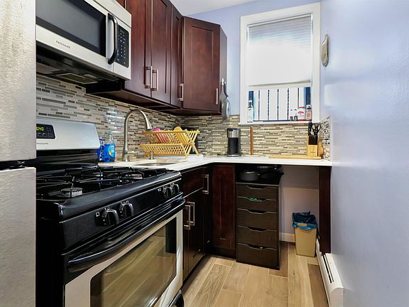 Additional highlights include on-site laundry facilities, a shared backyard oasis ideal for outdoor lounging or entertaining, and easy street parking. Commuters will love the ultra-convenient NYC access with NJ Transit bus service, NY Waterway ferry shuttles, and the Hudson-Bergen Light Rail all within minutes.