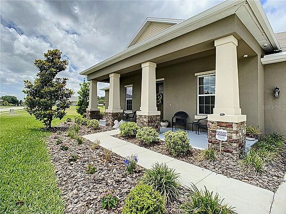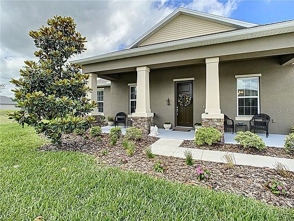 This gorgeous home in the beautiful gated community of Enclave of Carlisle in the Villages of Avalon is awaiting its new owner. This 4-bed,3 bath,3 car garage plus den home sits on over half an acre and was built in 2016. The grand entryway of this home opens to a formal dining room as well as a large den with french doors which could also be used as a home office.The oversized family room has plenty of space for large gatherings and a beautiful view of the pool. The gourmet kitchen with a oversized island that has additional storage space, the glass top stove,microwave and double door refrigerator will have you cooking and entertaining with ease.The granite countertops, wood cabinets with crown molding and walk in pantry add to the elegance of this kitchen, oh and let's not forget the sweeping view of the stunning lanai and pool area from the eat in area. What a great way to start the day. A large master suite with his and her walk in closets. The master bathroom has dual sink vanities with granite counter tops and a oversized walk in shower.Sizeable guest bedrooms will comfortably house the whole family. Granite counters in both guest baths, lets not forget the mudroom for those muddy boots and rain coats. This is a very rare and unique home, it has it's on solar system which will keep down on your energy bills. No rear neighbors The patio and pool area is the perfect to host a get together or just lounge around and enjoy the Florida lifestyle with an add. 2000 sq ft of screened lanai.The saltwater pool and free standing spa is a fabulous way to unwind or start your day.