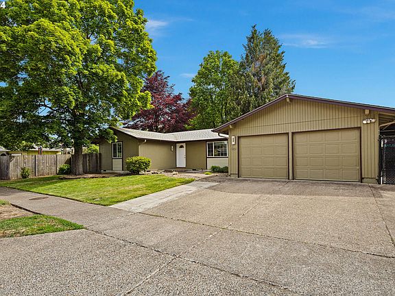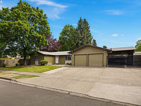 OPEN HOUSE CANCELLED FOR SUNDAY 6/2/2024. Situated in the desirable Danebo area, this nicely updated home offers 1464 sq ft of living area combining an ideal blend of comfort and functionality, 3 bedrooms and 1.5 baths, a family room, a living room, a large garage plus gated RV parking! Inside you will find new updates that enhance the home's appeal, including new flooring, updated door hardware, a new dishwasher, a new wine fridge, new window coverings and a fresh coat of interior paint. Stay warm in the winter and cool in the summer with the brand new furnace and heat pump. The floor plan includes a family room, in addition to the living room providing ample space for relaxation and entertainment. There's also a dining area with sliding doors to the backyard. The kitchen features updated cabinets, granite slab counters, a stainless steel double oven range, and a convenient pantry. The primary bedroom features a private half-bathroom. Outside, you'll find a nicely sized backyard with big shade trees, a covered patio and sprinklers to keep the grass green. Relax on the trex deck and lounge by the pool, just in time for summer! Additionally, there is plenty of room for your RV or boat. Danebo is a community located in Eugene with easy access to the freeway, schools, parks, and lots of recreational opportunities.