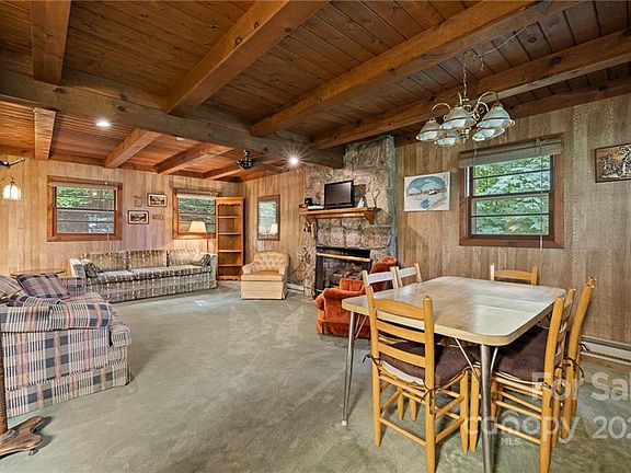 Well maintained, and authentic log cabin backs up to golf course at a great price! Enjoy the stone fireplace in the great room with gas logs and open beam ceilings, adjoining a tidy kitchen and dining area. Laundry is on the main level with a full bath. The lot is private and offers winter views. This is a quiet area of Wolf Laurel, and this home will sell quickly. Four seasons of amenities are available via separate, voluntary, paid memberships. Non brokers must be accompanied for sec gate. Restrictions can be acquired via WLRMS and WLPOA on RPDAcreage is per GIS only, no other info found. Upper level ceilings are 7 Ft., home being sold AS IS