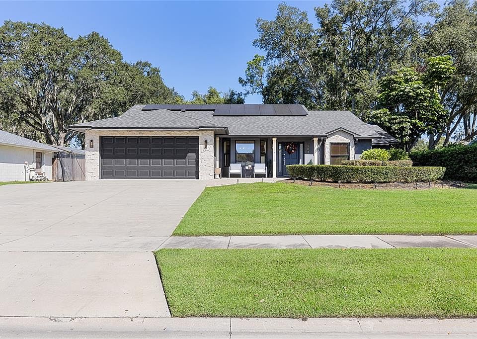 This stunningly updated 3 bedrooms, plus an office/den 2-bathroom residence blends contemporary design with warm, inviting charm. Nestled in a golf cart-friendly area of Winter Garden with no HOA, it offers both convenience and freedom. The open and split concept layout offers lots of privacy with the master located on the left side of the house offering two separate walk-in- closets and a separate ac unit. The 2nd and third beds are located on the right side of the house and a completely renovated 2nd bath. The living and dining room are open to the kitchen and are bathed in natural light, highlighting neutral walls colors and neutral tile wood planks floorings beautifully contrasted by sleek golden hardware and accents for a modern yet cozy vibe and as a final touch a wood burning fireplace. Vaulted cathedral ceilings amplify the spaciousness, and brand-new luxury tile planks flooring throughout the house. The kitchen is a true centerpiece, boasting newer stainless-steel appliances, soft-close custom-made cabinetry, and a striking stone backsplash and pot filler. A chef dreams gas range. A generously oversized quarts island provides ample storage, expansive prep space, and seating — perfect for entertaining or everyday family life. Recent upgrades include a 2023 roof, gutters and fully paid solar panels. A newer energy efficient water heater, ensuring comfort and peace of mind for years to come. Step outside to enjoy a large, fully fenced backyard featuring a 2023 heated new pool and hot tub, with extended open patio and a 2023 new covered summer kitchen with a bar and seating area — an ideal spot to relax and enjoy the outdoors grilling, drinking and entertaining family and friends. The backyard also offers a 28X12 carport, ideal for your RV parking, and a 12X10 shed built in 2022. The extended driveway is the perfect parking for those large trucks and SUV and golf cart as well. The location is unbeatable: just minutes from Winter Garden Village’s shopping, dining, and entertainment, and a short drive to the lively Plant Street Market. Lake Apopka is also nearby, offering scenic trails, water activities, and tranquil views. Don’t miss your chance to own this beautifully renovated gem in one of Winter Garden’s most desirable neighborhoods. Schedule your showing today and make this dream home yours!