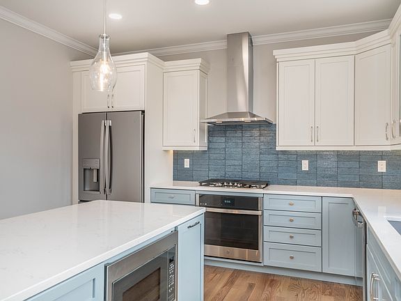 To be built. Stunning country home, 2,178 sq. ft., home featuring an open floor plan, front porch and deck, full walk-out basement located on a .67 acre lot in Kensington, quiet area country setting with pastoral farm views backing up to Town Conservation land that won't be built on. Open floor plan, first floor 9' ceilings. kitchen featuring; custom cabinets, quartz counter tops, large island, full Samsung SS appliance package, chimney hood, in island microwave. Front to back dining room/kitchen/family room with gas fireplace and granite surround. First floor master bedroom suite featuring WIC and additional closet. Two bedrooms and flex room on the second floor. First floor laundry room. 2.5 bathrooms. Hardwood flooring throughout the first and second floors. Walk-out basement with 9' ceiling, and windows with option to easily finish. Quality trim throughout; crown molding, etc. Energy efficient. Note: builder has alternative plans to create a larger more open front to back family room and a third bedroom on the second floor along will adding a mud hall/powder room/laundry room area off of the entrance from the garage into the house. Back yard with room for recreation, swimming pool, etc. Quiet country road. Close to Timberlin Golf Course, Ragged Mtn Preserve, Chamberlain Hwy, Rt. 9, 72, 691 and 5, shopping, restaurants, train station, and more! Note, these floor plans and photos are from builders other completed homes; additional plans & finishes