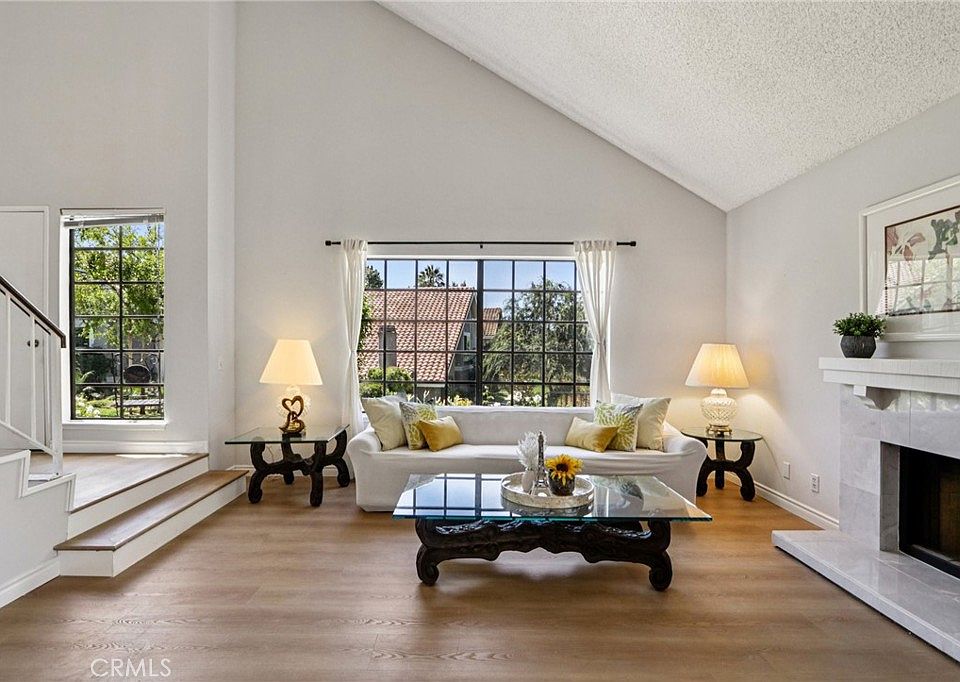 New luxury vinyl flooring throughout the main level and stairs. Living Room features vaulted ceilings and a marble-faced fireplace. Updated Kitchen with brand-new quartz countertops, and freshly painted cabinetry, opens to a cozy Family Room and breakfast nook.