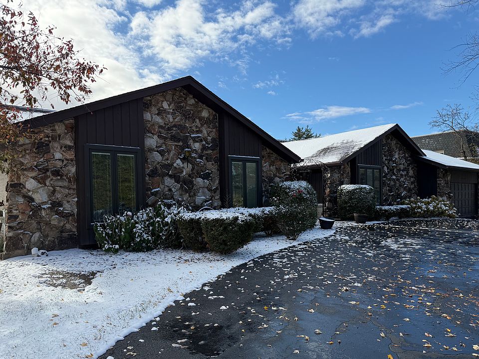 Situated in one of the most sought-after locations on Lake Mary Anne, this spacious mid-century modern ranch offers close to 6,000 square feet of living space and incredible lake views from nearly every room. Nestled in the private and peaceful Lake Mary Anne Estates, this home combines the beauty of waterfront living with a layout designed for comfort and entertaining. The design brings in natural light through vaulted ceilings, skylights, and floor-to-ceiling windows. The main level features four bedrooms, including a generous primary suite with dual walk-in closets, a large bath, and breathtaking lake views. The eat-in kitchen opens to the family room with sliding doors leading to a raised deck overlooking the water - perfect for relaxing or entertaining. The walkout lower level doubles the living space, complete with an indoor pool, second kitchen, steam shower, and recreation area. Step outside to enjoy multiple decks, patios, and your own private dock, ideal for embracing the lakefront lifestyle year-round. The home is being sold as-is and offers a rare opportunity for a buyer to update and customize to their taste. With its size, layout, and unmatched lakefront setting, this property has tremendous potential to become a true showpiece.