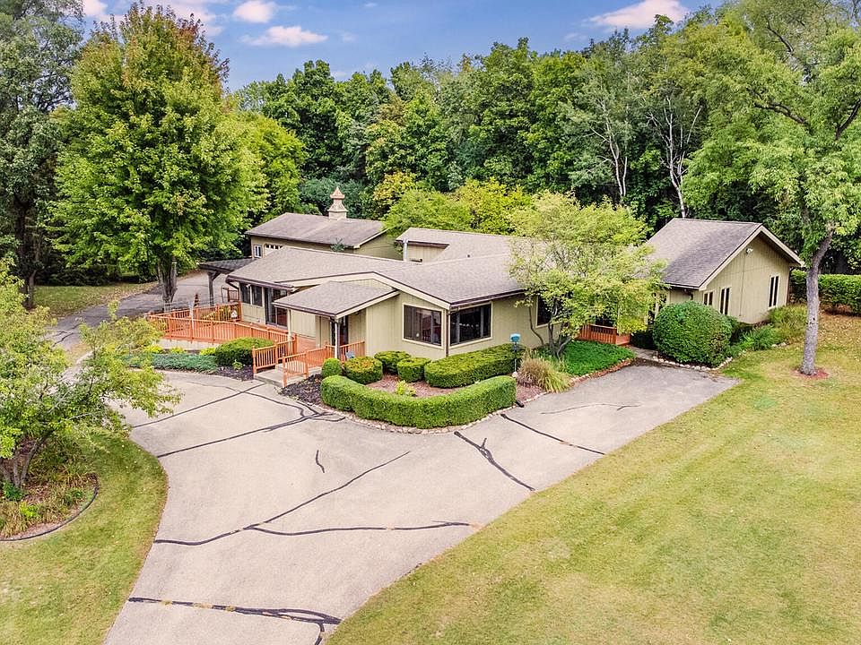 Set back on a hilltop, this charming cedar ranch offers the perfect blend of comfort, style, and privacy. Inside, you'll find an open-concept layout with a spacious Great Room, Dining, and Living area featuring beautiful engineered hardwood floors. The home boasts 3 bedrooms and 3 full bathrooms, providing plenty of space for family and guests.An inviting three-season room opens to expansive decks--ideal for entertaining. Outdoors, enjoy the large side patio with pergola, the perfect spot to sip your favorite drink and soak up summer days with family and friends. The oversized barn-style garage, complete with cupola, has room for multiple vehicles plus all your toys and hobbies.The .6-acre lot is beautifully landscaped and bordered by the wooded edge of the Nippersink Bowl